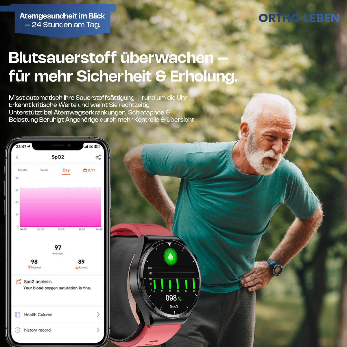 Die OrthoWatch Cura ist mehr als eine Smartwatch – sie ist ein Gesundheitsbegleiter, der mitdenkt.