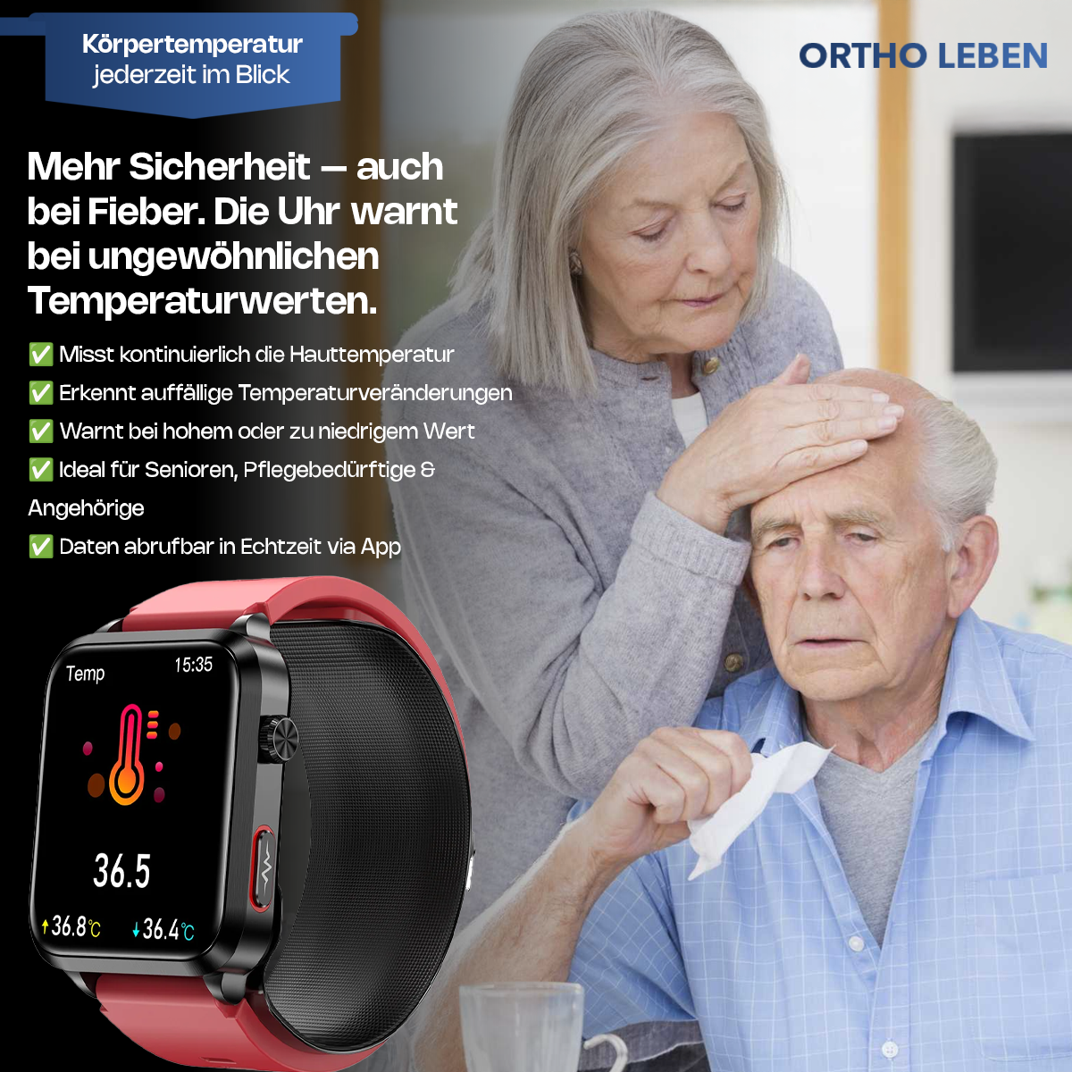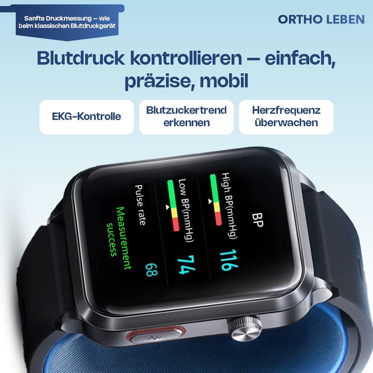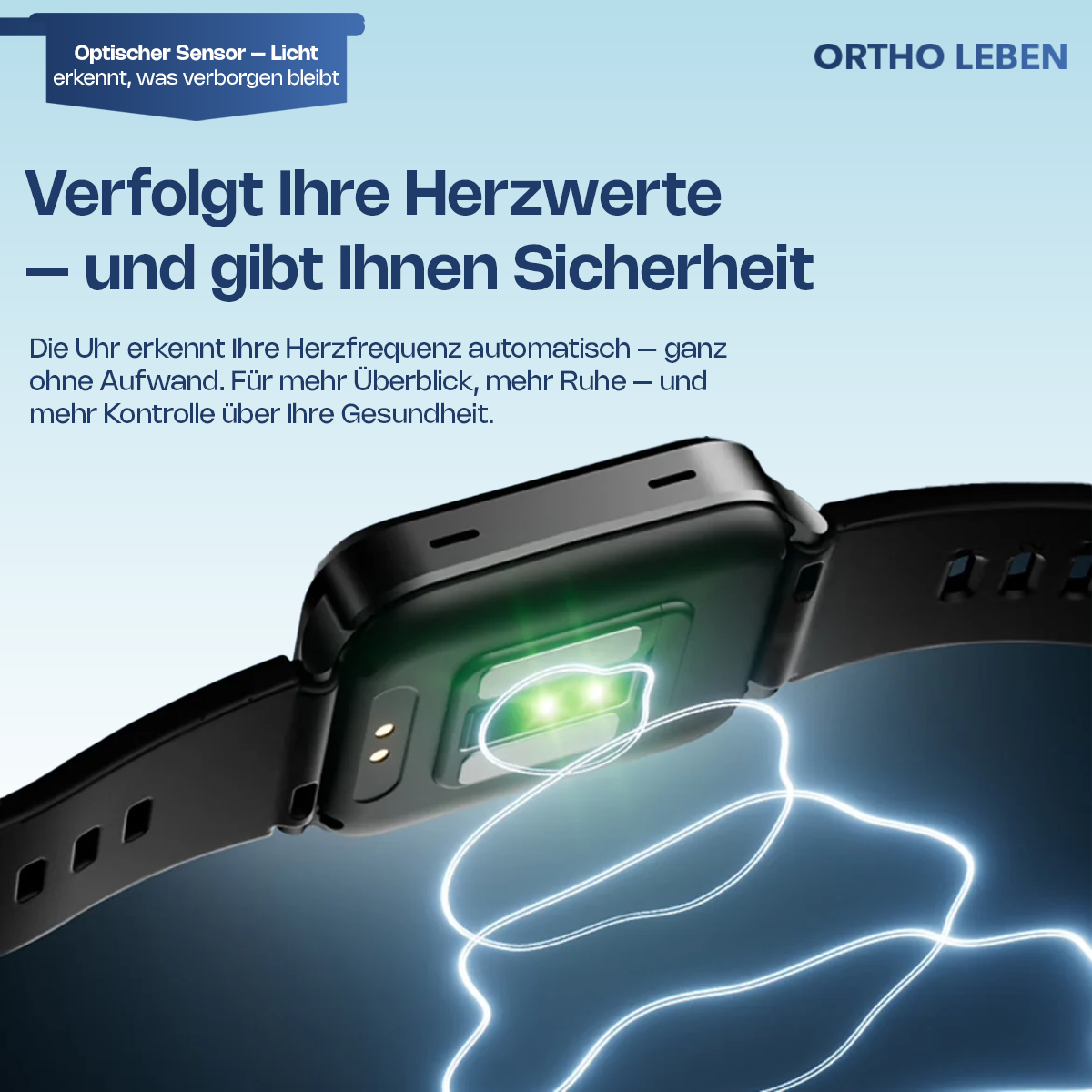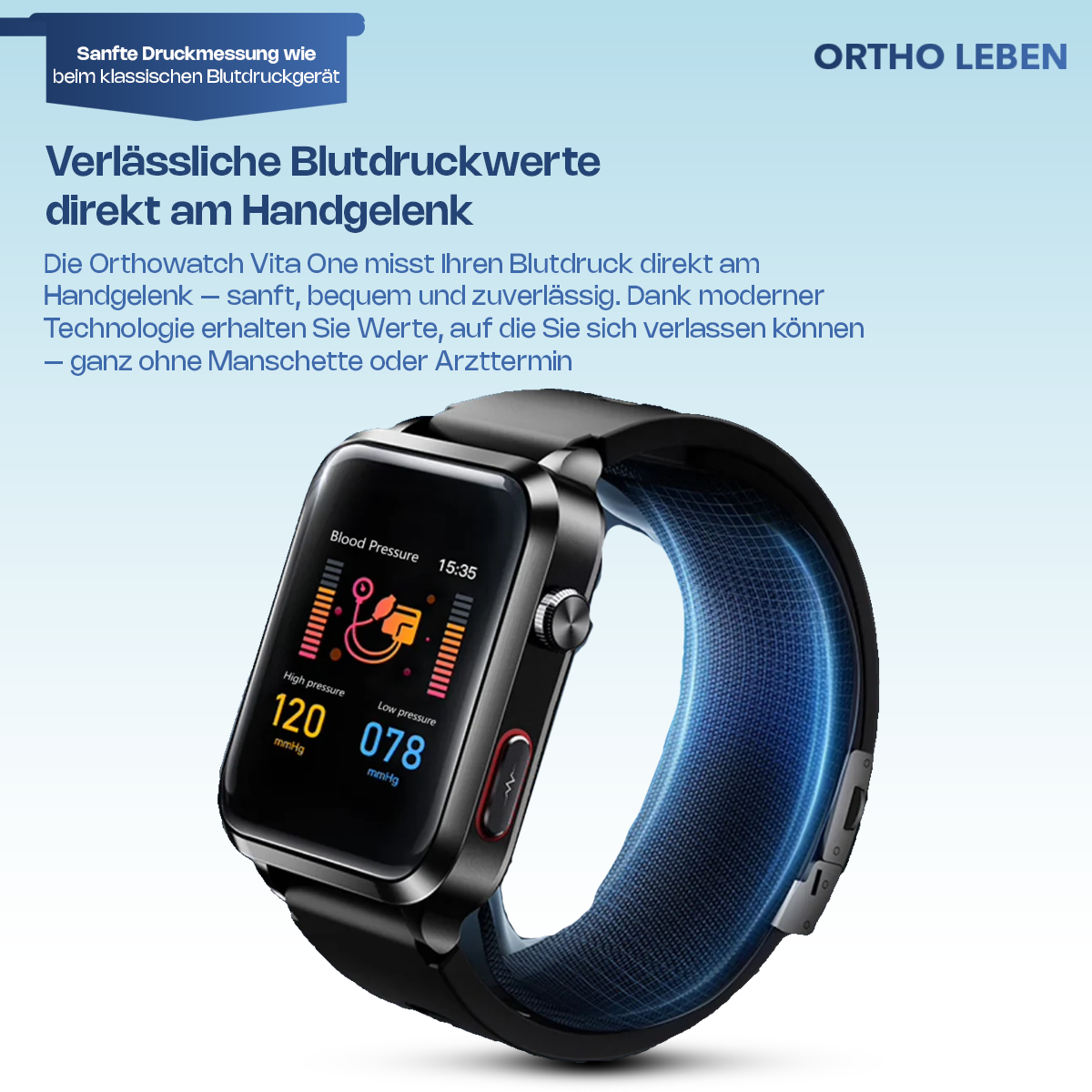 Die Orthowatch Vita One wurde speziell für Menschen entwickelt, die ihre Gesundheit im Alltag selbst im Blick behalten wollen – einfach, sicher und zuverlässig.