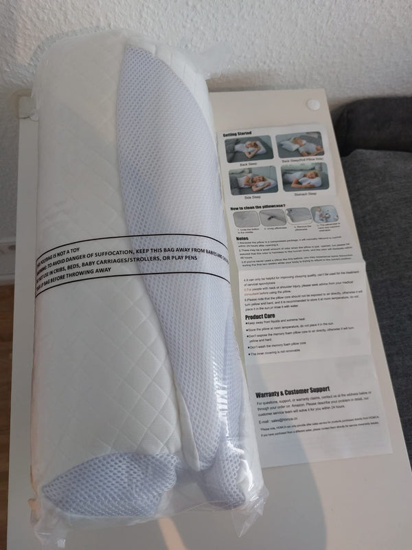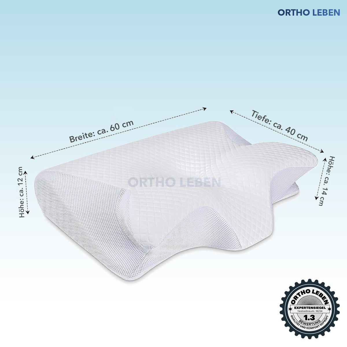 Das ergonomische Design unterstützt eine angenehme Liegeposition. Die anpassungsfähige Form kann sich verschiedenen Schlafpositionen anpassen und den Druck auf Nacken und Schultern gleichmäßig verteilen – für eine entspannte Nacht.