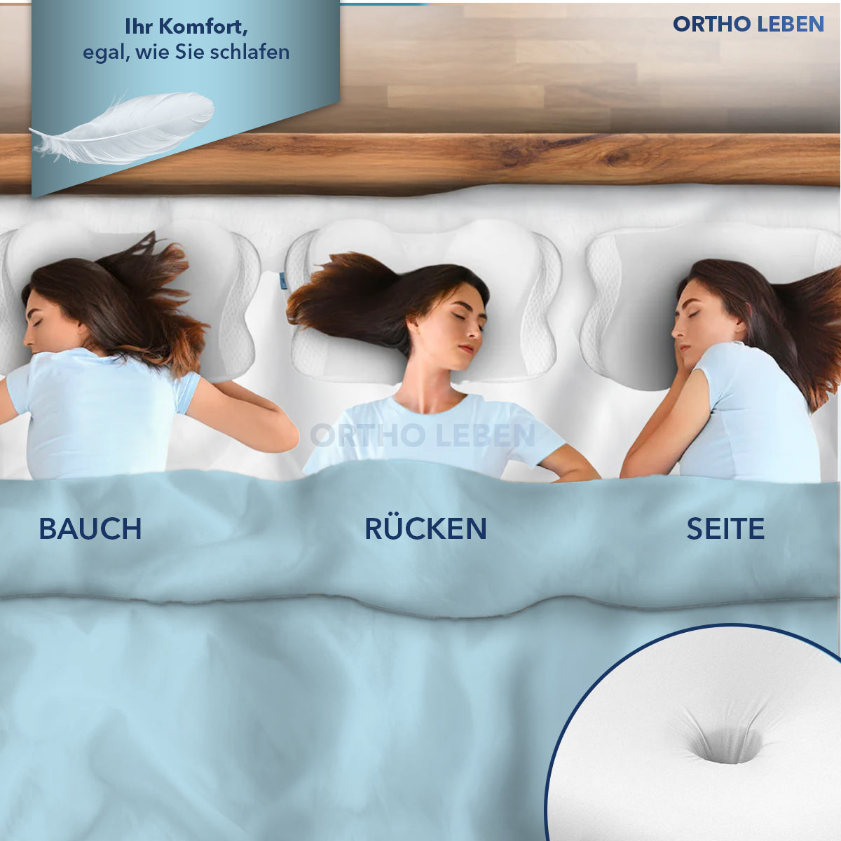 Das ErgoSleep-Kissen ist für verschiedene Schlafpositionen konzipiert. Dank der anpassungsfähigen Memory-Foam-Füllung kann es sowohl für Seiten-, Rücken- als auch für Bauchschläfer eine angenehme Unterstützung bieten.