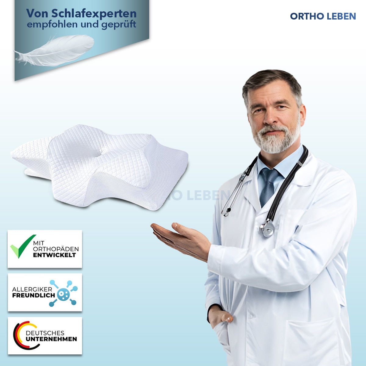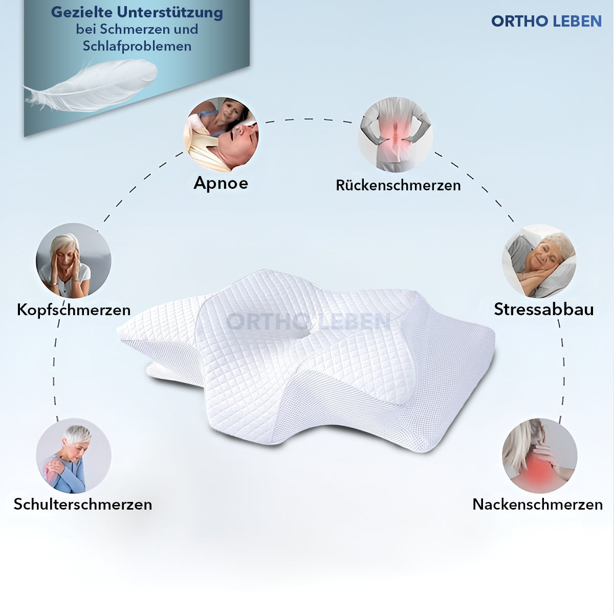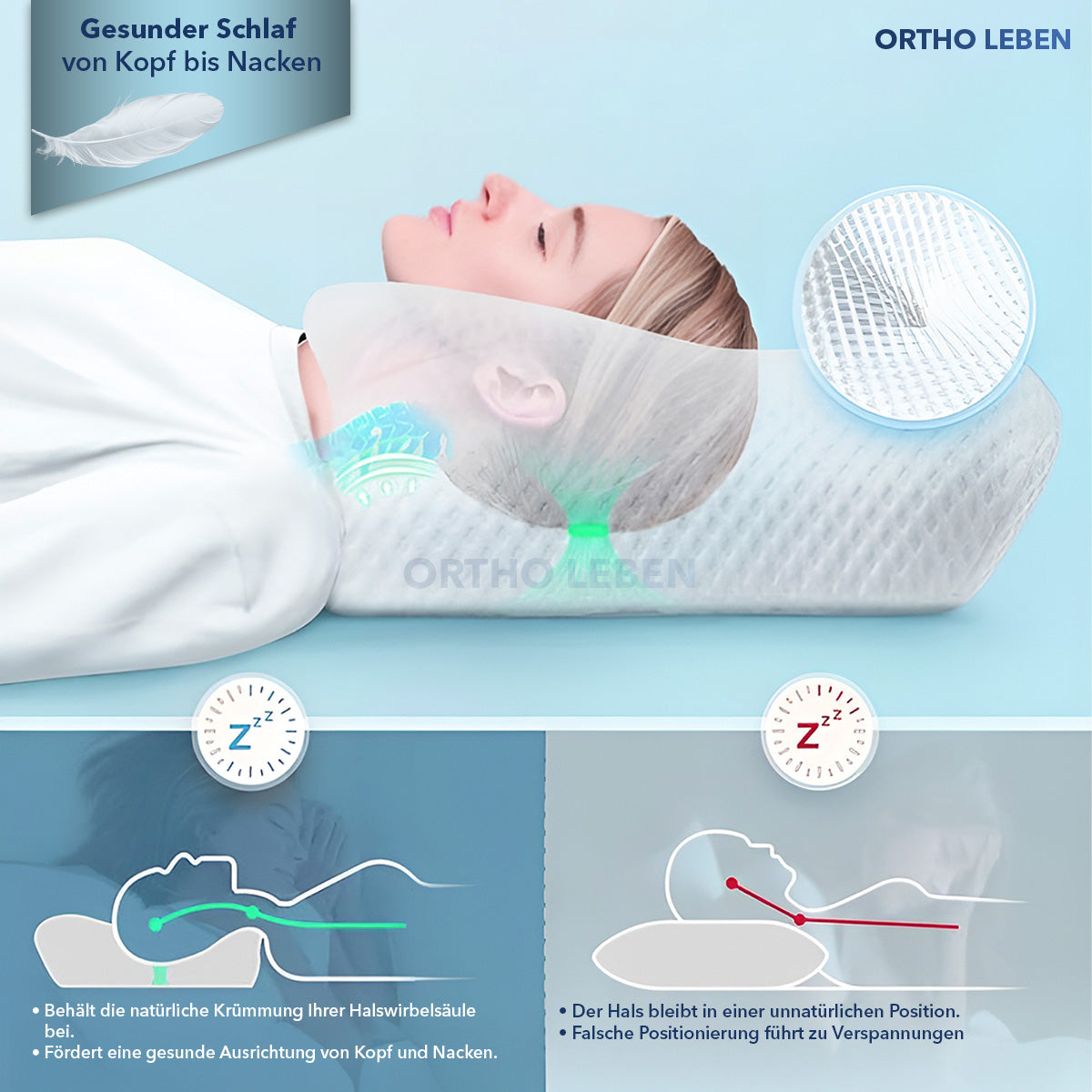 Das ergonomische Design des ErgoSleep-Kissens kann helfen, die Halswirbelsäule in einer angenehmen Position zu unterstützen. Es kann Druckpunkte verringern und eine entspanntere Liegeposition fördern.