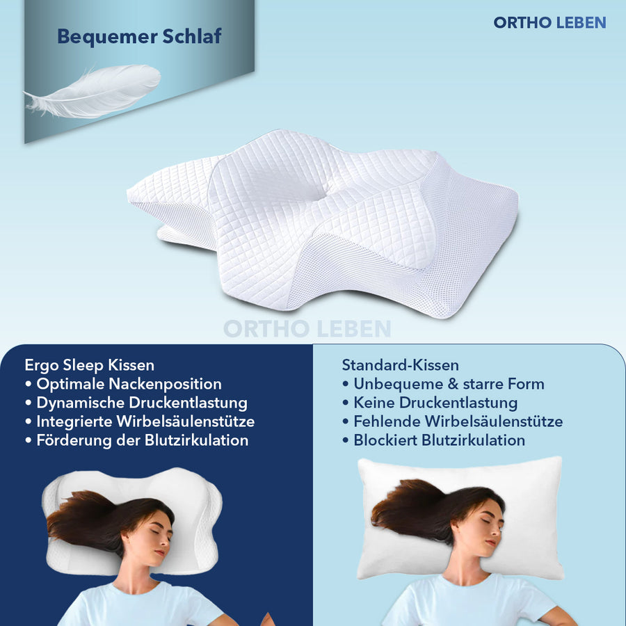Das ErgoSleep-Kissen wurde mit ergonomischem Fokus entwickelt, um die Kopf- und Nackenposition zu unterstützen. Dank Memory-Foam kann es sich individuell anpassen und eine angenehme Liegeposition fördern.
