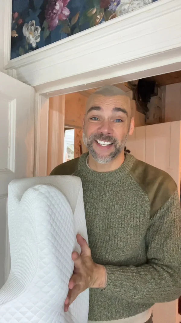 Seine ergonomische Form hält Kopf und Nacken stabil in ihrer natürlichen Ausrichtung – entlastet die Muskulatur und sorgt für spürbar ruhigeren Schlaf.