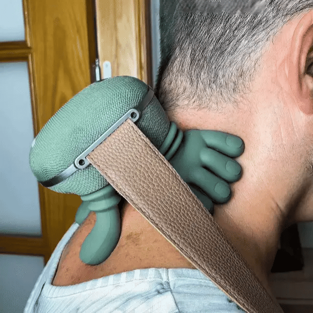 Ruhige Tiefenstimulation kombiniert mit angenehmer Wärme unterstützt verspannte Muskelbereiche – ganz ohne Schmerzmittel. - Entwickelt für Nacken & Trapez