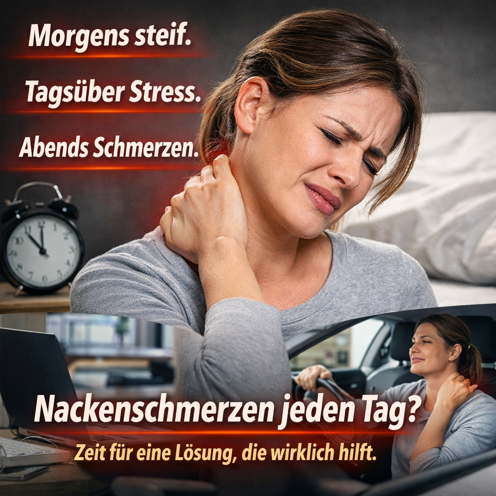 Nackenverspannungen entstehen nicht plötzlich. Sie bauen sich durch langes Sitzen, Bildschirmarbeit und Stress auf – und werden für viele Menschen zum täglichen Problem. Steifheit am Morgen, Druck im Laufe des Tages und Schmerzen am Abend sind oft die Folge.