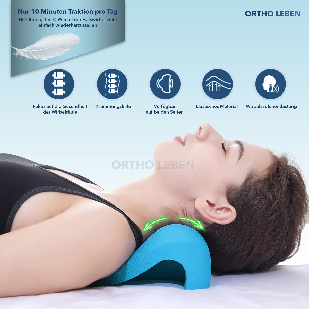 Der Nackendehner ist für die passive Anwendung entwickelt: einfach hinlegen, entspannen und dem Nacken bewusst eine Pause geben – sicher, unkompliziert und alltagstauglich.