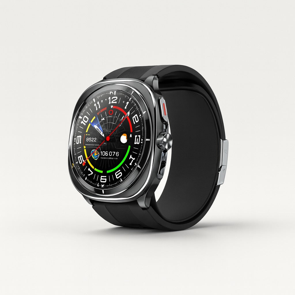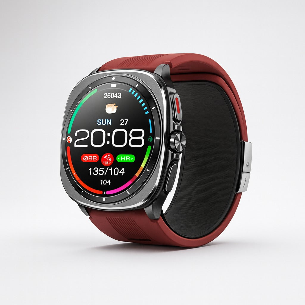 Die Uhr verwendet ein echtes Airbag-Luftdruckband für präzise, reproduzierbare Blutdruckwerte sowie einen EKG-Sensor mit Nanoglasoberfläche für klare Herzaktivitätsmessungen.