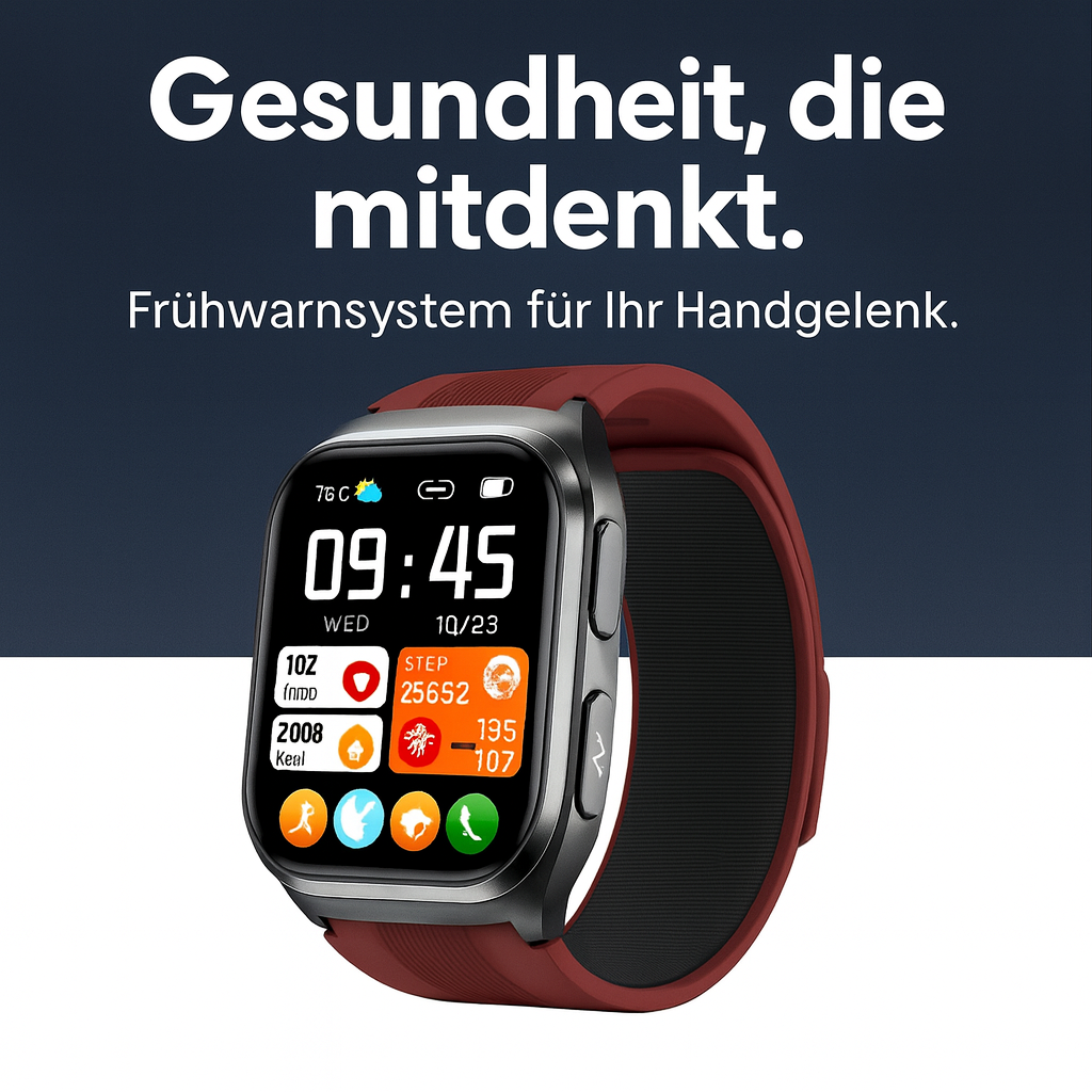 Genau dafür wurde die OrthoWatch Vitra entwickelt. In Zusammenarbeit mit Experten aus Medizin und Technologie entstand eine Gesundheitsuhr, die Sie nicht nur misst – sondern begleitet, schützt und unterstützt.